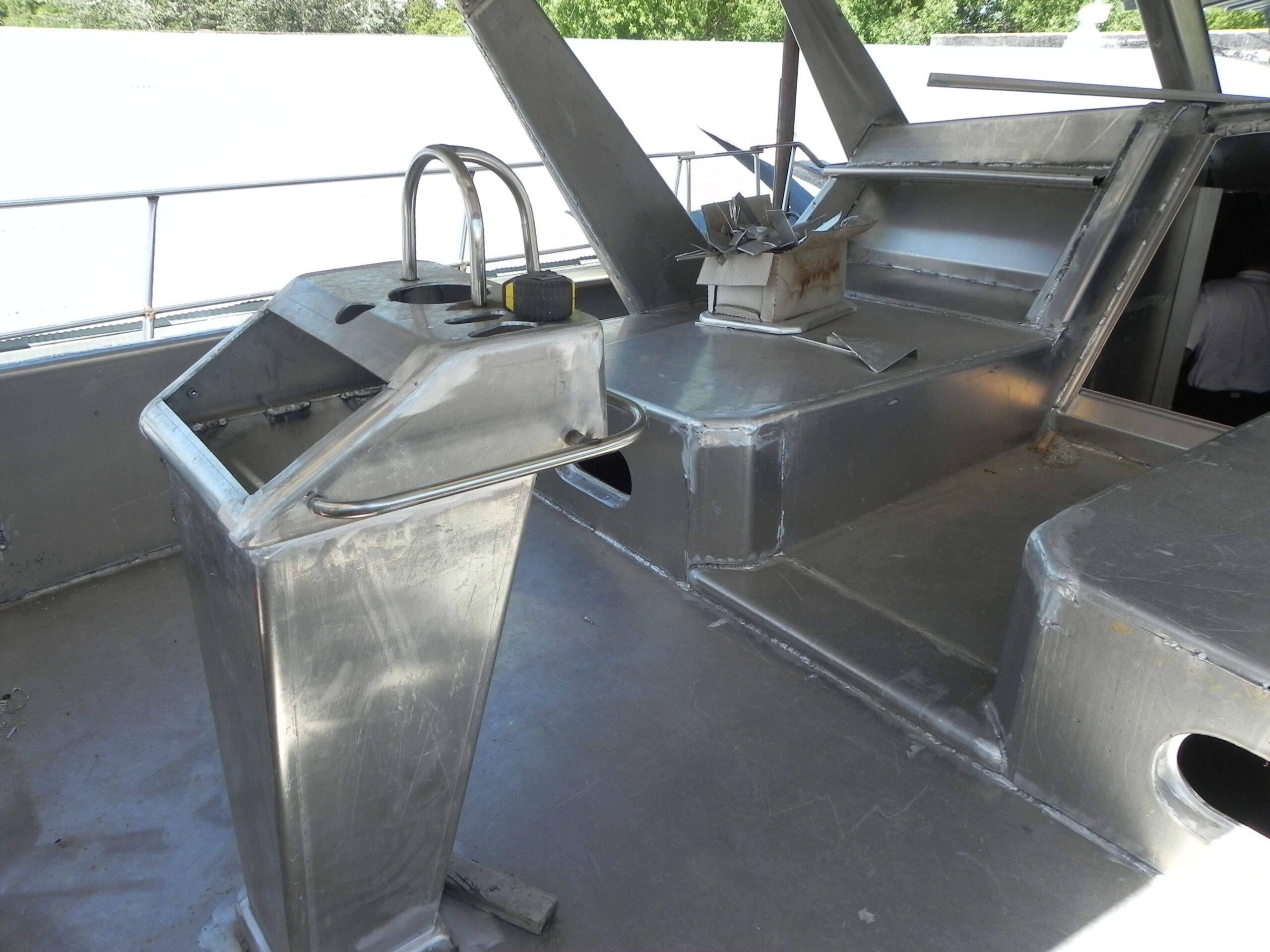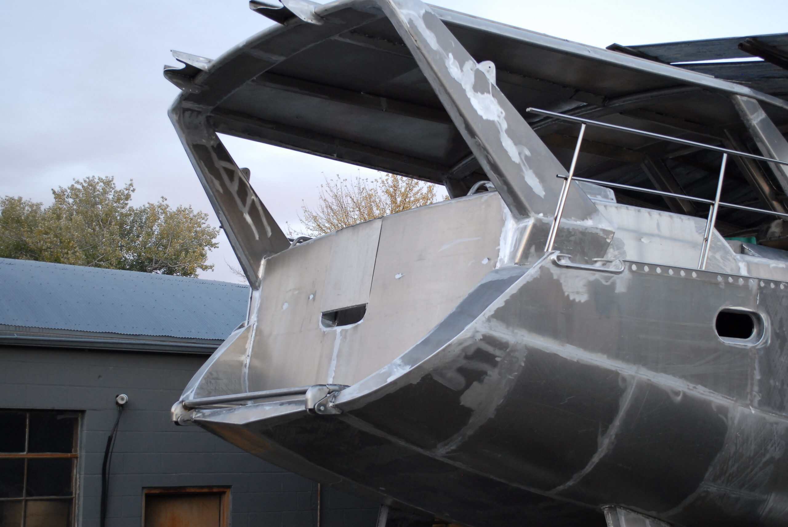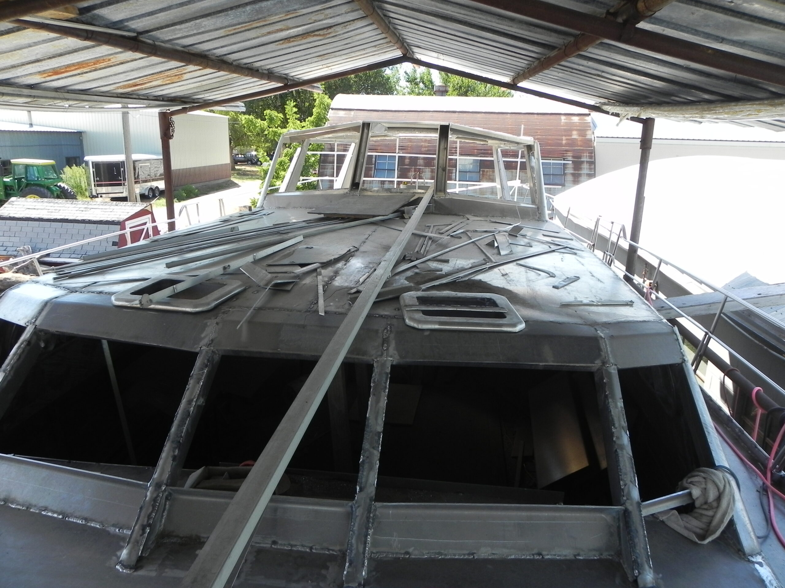 Greg worked from the plans of a Bruce Roberts designed boat. He researched many books and online materials. As an auto body specialist, Greg has worked with metals, welding, machining, forming and cutting. The boat will contain not only aluminum but a variety of other materials such as exotic wood, cherry, and local walnut.